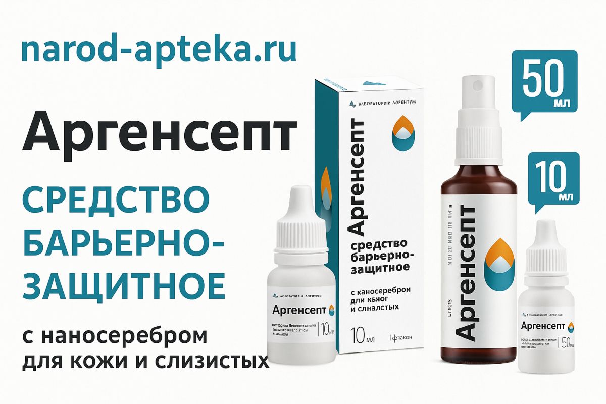 Аргенсепт – это средство барьерно-защитного действия на основе нанокластеров серебра, разработанное российской компанией «Лаборатория Аргентум». Благодаря уникальной формуле препарат создает на поверхности кожи и слизистых тончайшую микропленку, которая препятствует развитию бактерий, вирусов и грибков, одновременно способствуя быстрому заживлению и снятию воспаления.