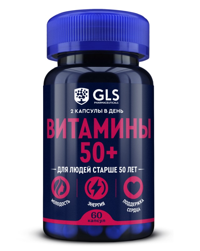 Витамины 50 плюс GLS - специально разработанный комплекс для людей старше 50 лет помогает сохранить хорошее самочувствие и активность. Обладает высокой антиоксидантной активностью. Способствует снижению негативного влияния окислительного стресса на организм и поддержанию молодости и красоты — Anti-age эффект.