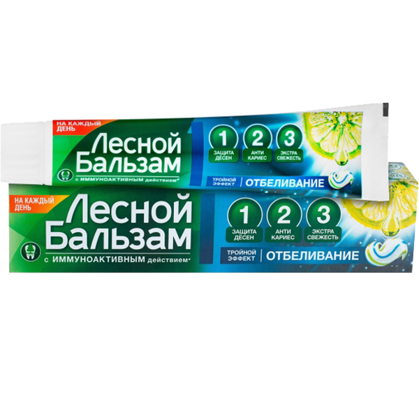 Aqua, Sorbitol, Silica, PEG-32, Sodium Lauryl Sulfate, Abies Sibirica Oil, Achillea Millefolium Extract, Camellia Sinensis Leaf Extract (экстракт листьев белого чая), Chamomilla Recutita (Matricaria) Flower Extract, Citrus Limon (Lemon) Juice, Hypericum Perforatum Flower/Leaf/Stem Extract, Mentha Piperita (Peppermint) Flower/Leaf/Stem Extract (экстракт мяты), Quercus Robur Bark Extract, Ribes Nigrum (Black Currant) Leaf Extract, Salvia Officinalis (Sage) Leaf Extract, Urtica Dioica (Nettle) Extract, Sodium Fluoride, Aroma, Cellulose Gum, Glycerin, Lactic acid, PEG-40 Hydrogenated Castor Oil, Pentylene Glycol, Propylene Glycol, Sodium Saccharin, Trideceth-9, Trisodium Phosphate, Eugenol, Limonene, CI 74260, CI 77007, CI 77891.